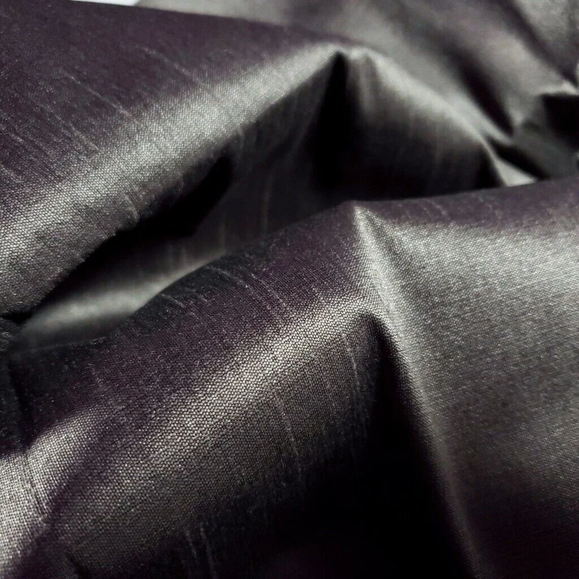 This project has two primary fabrics: ivory linen with some grey and brown flecks and gunmetal grey dupioni. Some details include piping made of deep red taffeta and burgundy faux leather edging.