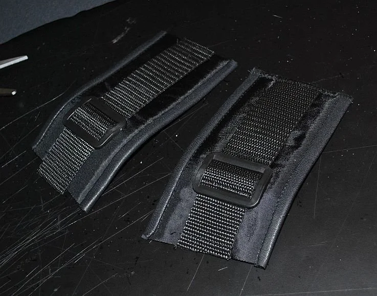 The straps were next. These were lightly padded with headliner foam and decorative webbing, and tri-glides were sewn to the top. These were then attached to the front under the chest plates.