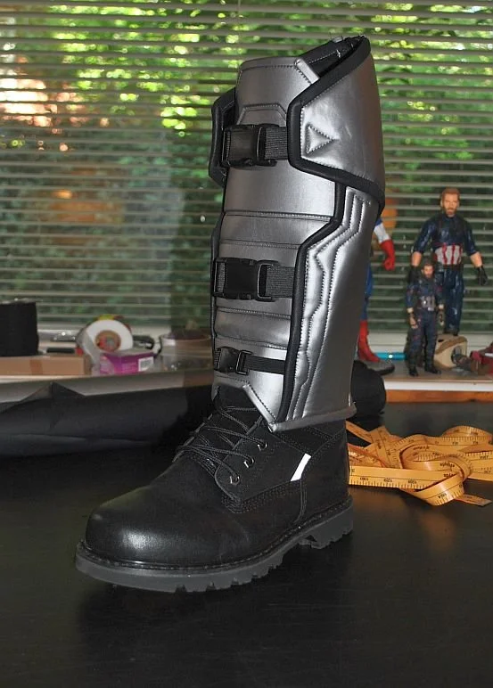 And, the boots (as well as a slightly blurry phone pic of how they fit with the pants). Once the foam base was complete, the lower surface was covered in thin foam to add padding.